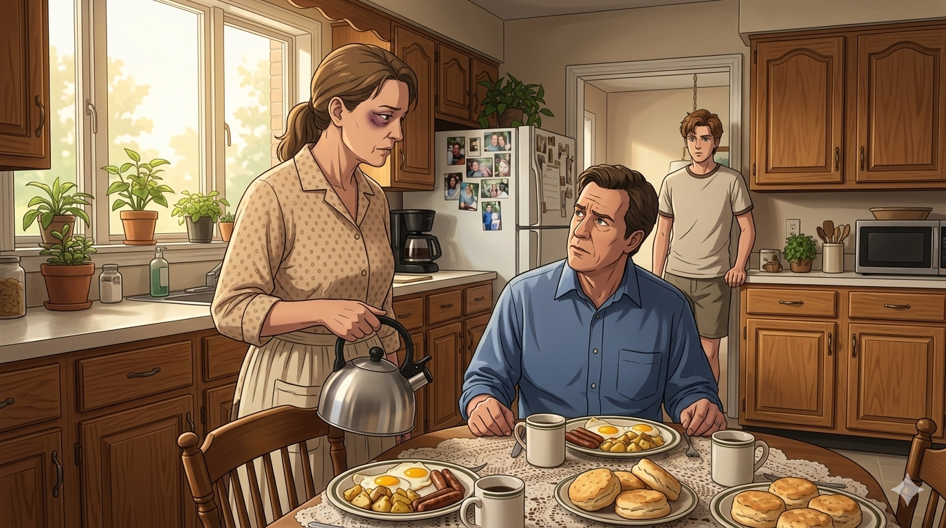 Last night my son hit me, and I didn’t cry. This morning, I brought out the good tablecloth, prepared breakfast as if it were a celebration, and when he came downstairs smiling, he said, “So you finally figured it out”… until he noticed who was sitting at my table.