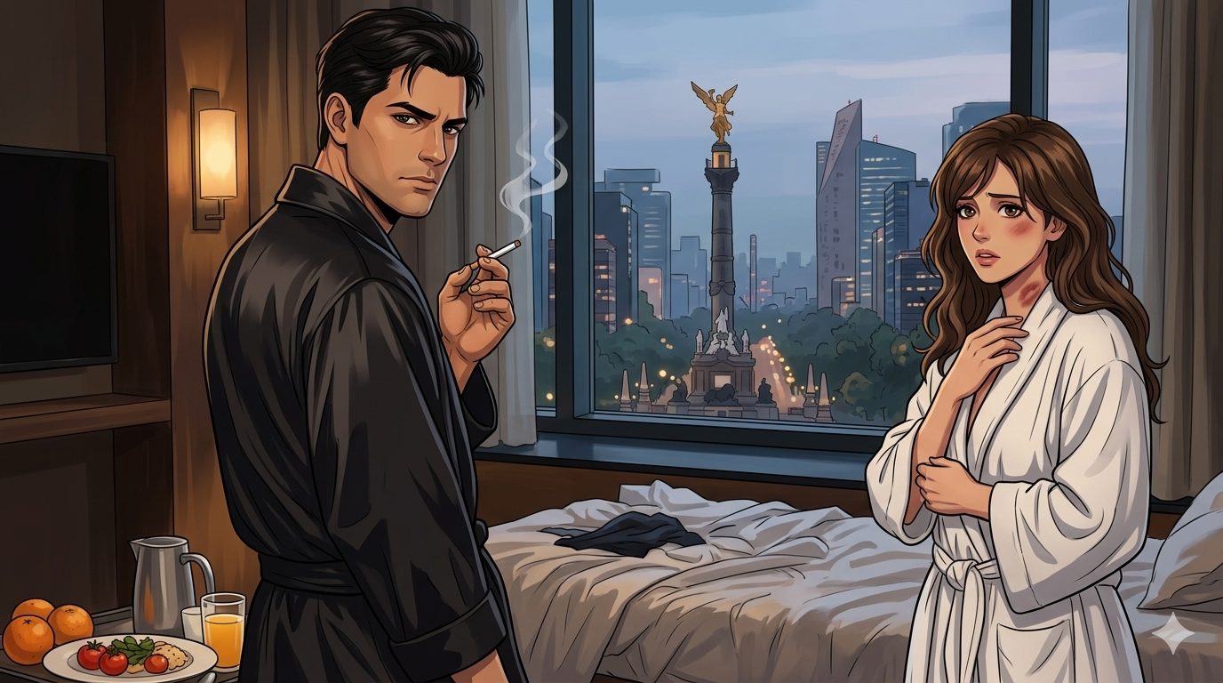 A luxury suite. Scattered clothes. Your boss smoking by the window as though waking up next to his assistant in the same bed was just another item on his schedule. The memory of the night before came in broken flashesâcrystal glasses, business laughter, the glittering skyline over Paseo de la Reforma, Rafael loosening his tie for the first time you had ever seen, and then nothing solid enough to save you.