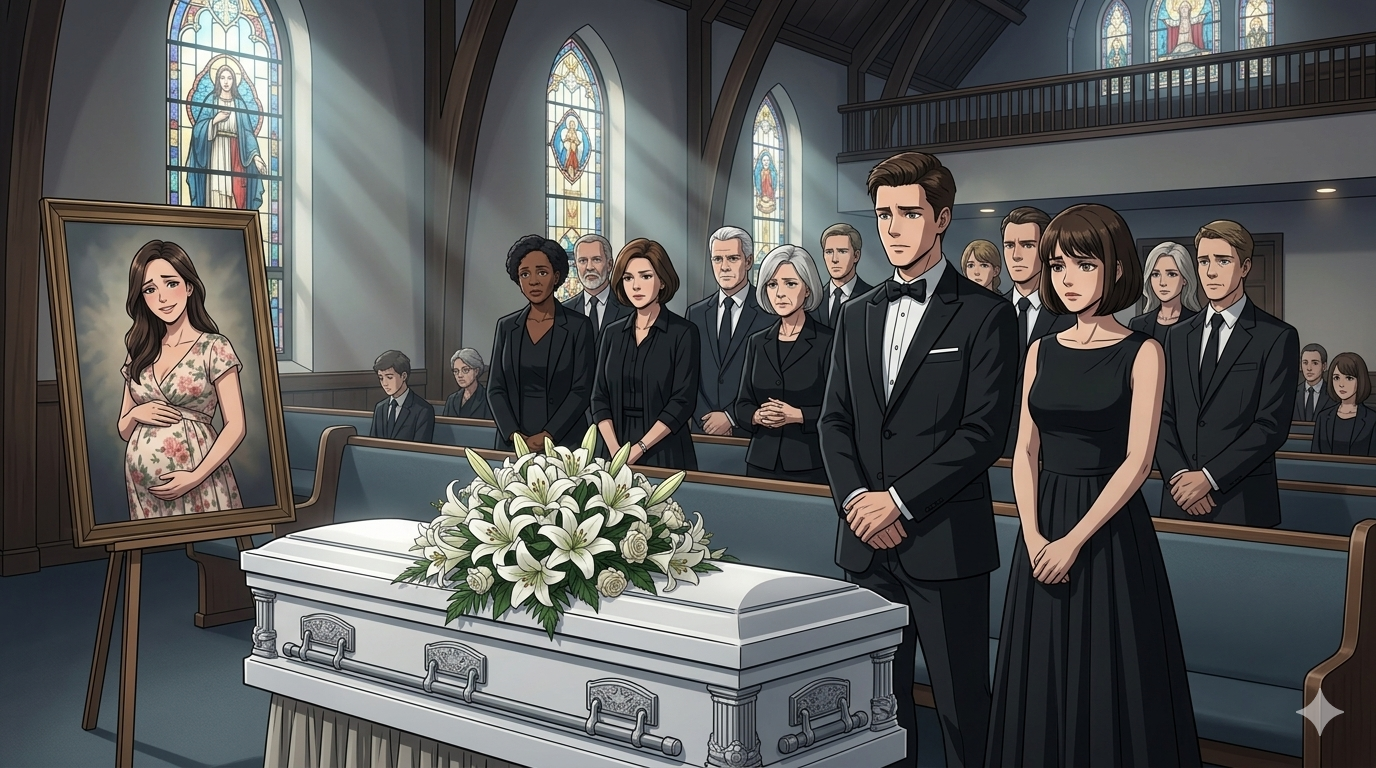 The church in our small Texas town was heavy with the scent of white lilies and low, murmured prayers. At the front sat my sister Lily’s closed casket. She had been thirty-two weeks pregnant when she supposedly “fell” down the stairs. That was Jason’s explanation. A tragic accident. Nothing more.