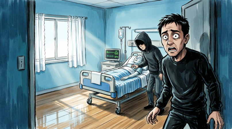 At first, I saw only the familiar scene: Bree in her bed, her face turned slightly toward the door, her hair spread on the pillow like dark ink. The monitor beside her blinked green. The little bedside lamp cast a warm circle of light.