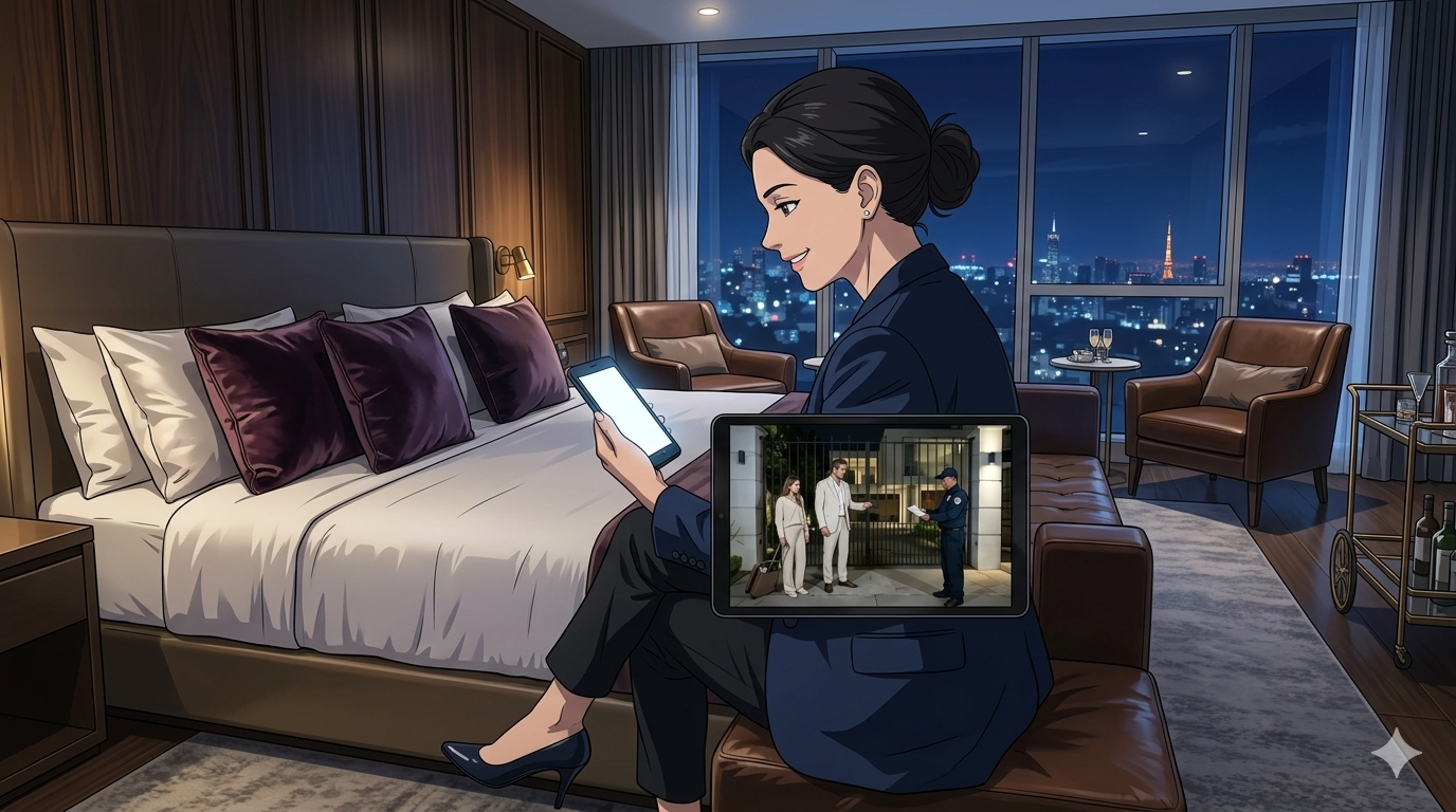 Through the exterior security feed on my phone, I saw the taxi pull up at the gate.