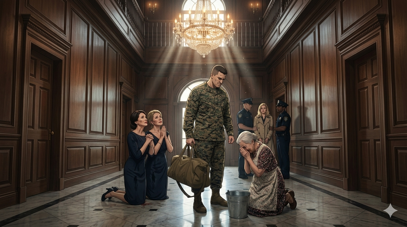 FULL STORY: After five years deployed overseas, my son came home without warning and found me on my knees scrubbing the hardwood floors of the house I once built with my own hands, my apron stained, my fingers raw and trembling, while his wife and her mother lounged on the Italian leather sofa sipping coffee as if they owned the air I breathed. “Mom… why are you on the floor?” his voice cracked, disbelief turning sharp. Laura gave a soft, dismissive laugh. “Oh, Alex, she insists on keeping busy. It’s good for her.” He stepped closer, his shadow falling over me, his eyes darkening as he took in the bucket, the rag, the way I couldn’t quite straighten my back.